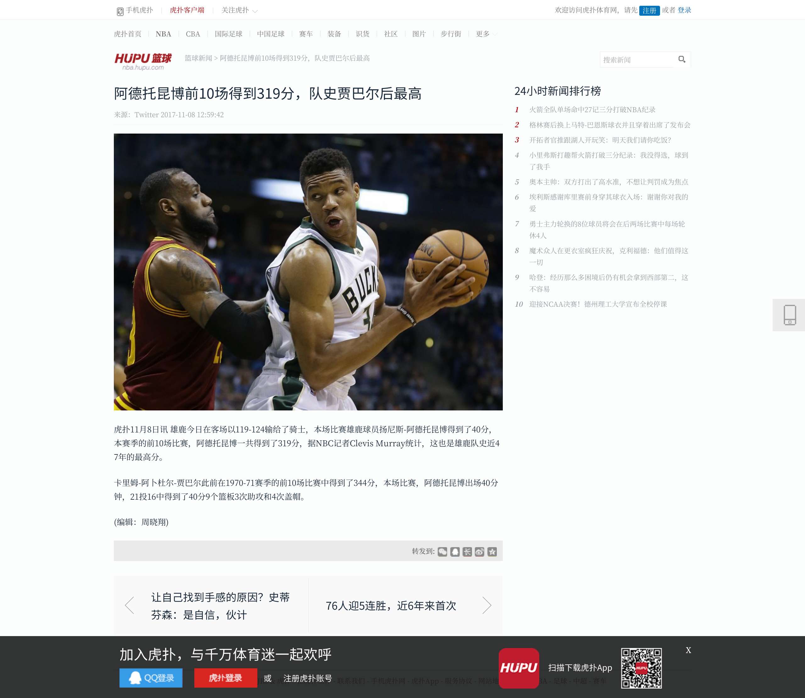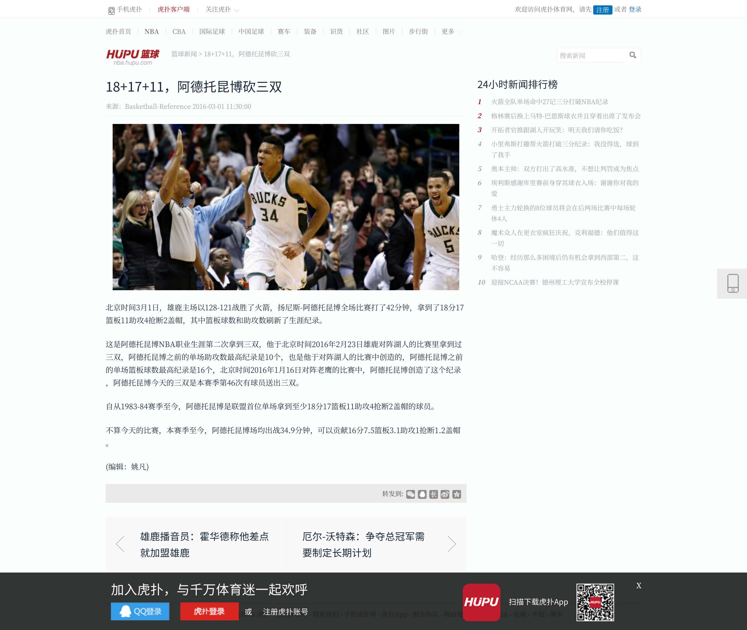 [流言板]字母哥拿到生涯第127次30+10+5,追平詹姆斯并列历史第四.虎扑.2024-04-09