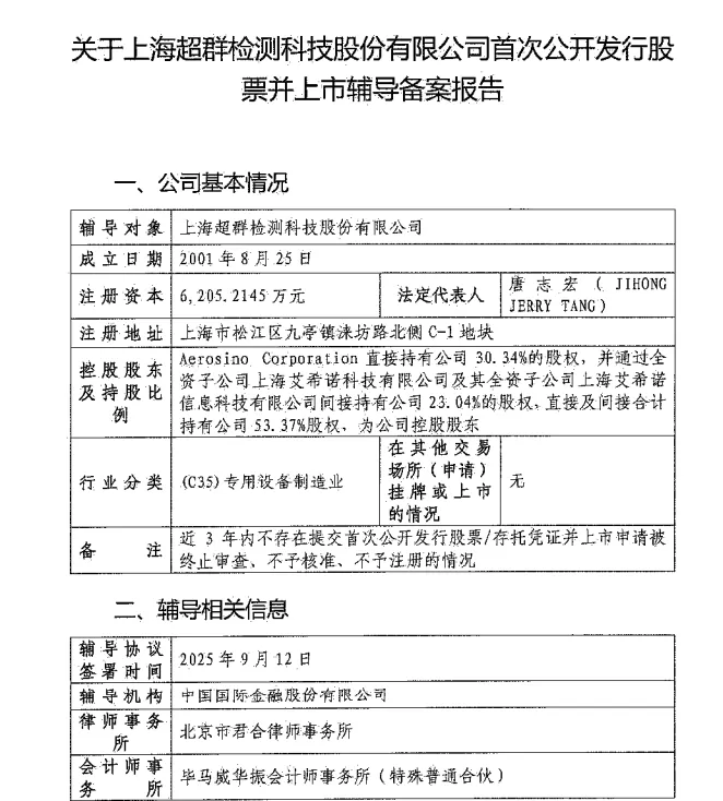 9月26日,中国证监会官方网站公布最新信息,上海超群检测科技股份有限公司已正式开启上市辅导流程,中金公司作为其辅导机构;同日,江西昌兴航空装备股份有限公司也启动了上市辅导工作,国泰海通证券将负责相关辅导事宜。