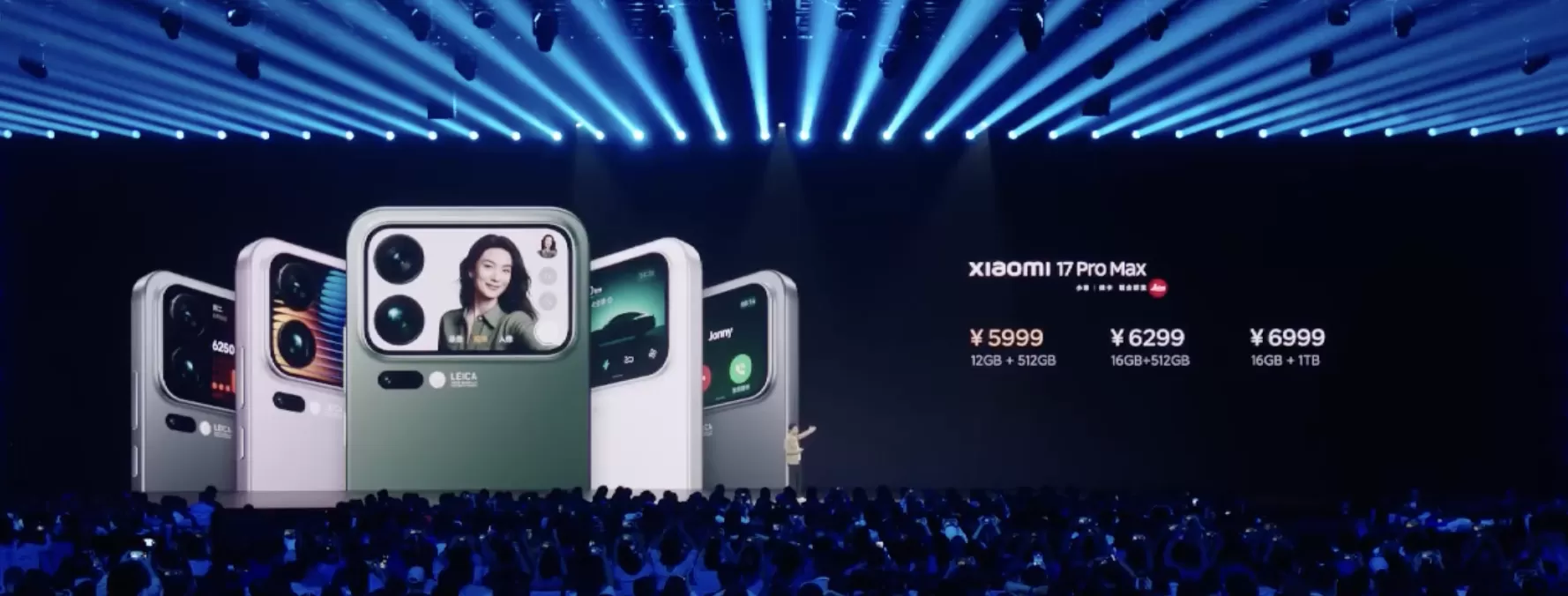 官方定价显示,小米17起售价4499元,小米17 Pro起售价4999元;小米17 Pro Max从512GB版本起售,定价5999元。